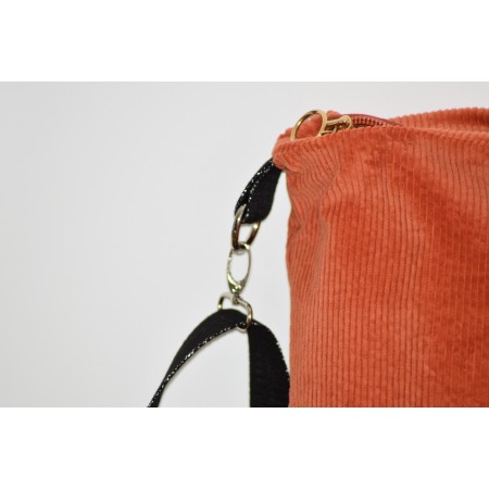 Besace en velours tout doux orangé à l'extérieur